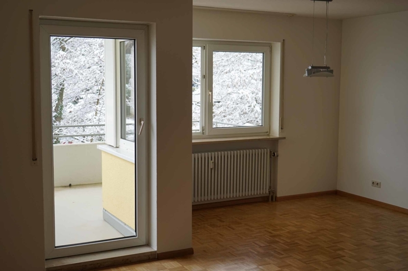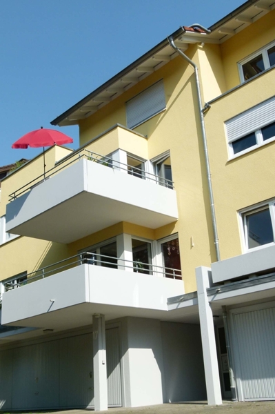 Unsere 2-Zimmer-Wohnung befindet sich im 1. Obergeschoss eines 8-Familien-Wohnhauses. Dieses liegt nahe der Schweizer Grenze am Ende eines Wohngebietes mit 30er Zone in einer Sackgasse. An unser Wohnhaus angrenzend befinden sich Wiesen und Wälder mit sehr schönem Wanderwegenetz.