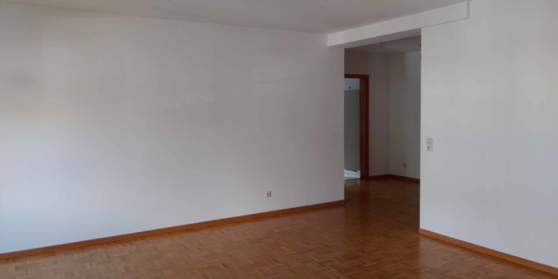Die Böden in der gesamten Wohnung (außer Küche und Badezimmer) sind mit Parkett belegt. An den Wänden finden wir weiß gestrichene Raufasertapete und das Badezimmer ist mannshoch gefliest.