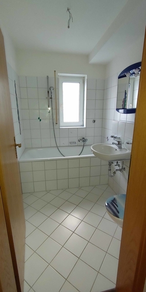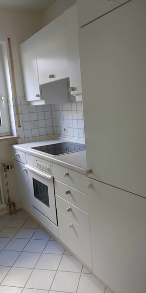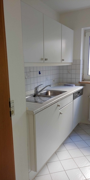 Sowohl die Küche als auch das Badezimmer sind klassisch in weiß gehalten. Die Wohnung wird gestrichen übergeben.