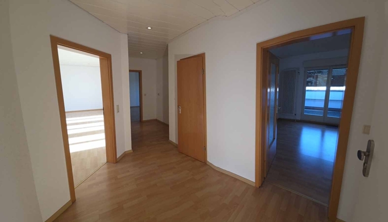 Die 1995 neu ausgebaute Wohnung ist sowohl über ein separates Treppenhaus als auch einen Personenlift erreichbar. Der Grundriss erstreckt sich mit seinen ca. 105 m² Wohnfläche über die gesamte Etage. Durch den großzügigen Einbau der Dachgauben haben wir in fast allen Räumen sehr wenig Dachschrägen und somit eine deutlich größere Nutzfläche. Der große Dachbalkon (Dachterrasse) erstreckt sich nahezu über die gesamte Breite der Wohnung und kann über bodentiefe Terrassentüren von zwei Zimmern aus betreten werden. Von hier aus hat man einen sehr schönen Blick in den weitläufigen, grünen Innenhof der umliegenden Wohnhäuser sowie den weiter entfernt liegenden Hochschwarzwald. Von einem der Zimmer hat man Zugang zu einem weiteren kleinen Balkon. Die Wohnung eignet sich sehr gut für eine Familie mit Kindern oder Senioren, da die Infrastruktur für den täglichen Lebensbedarf (Kindergärten, Schulen, Ärzte, Einkaufszentren, Drogerien, Apotheken etc. ) in unmittelbarer Umgebung zu Fuß erreichbar ist.