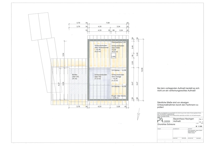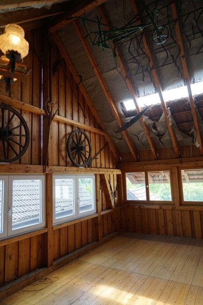 Beim Umbau des Gebäudes wurden die Grundmauern des Hauses nicht wesentlich verändert. Die Scheune sowie der gesamte Dachstuhl blieben nahezu unverändert. Die Kubatur im Dachstuhlbereich ist riesig. Vor ein paar Jahren gab es noch ein paar kleinere Sanierungen im Haus, um beispielsweise im Badezimmer eine Barrierefreiheit zu schaffen.
