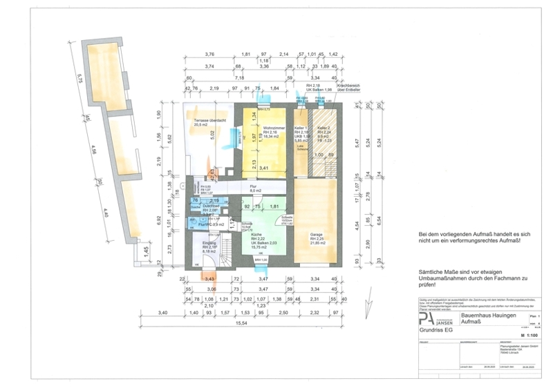Das Wohnhaus ist nur teilweise unterkellert. Das Grundstück hat eine Gesamtfläche von 1.317 m². Davon sind ca. 150 m² überbaut.