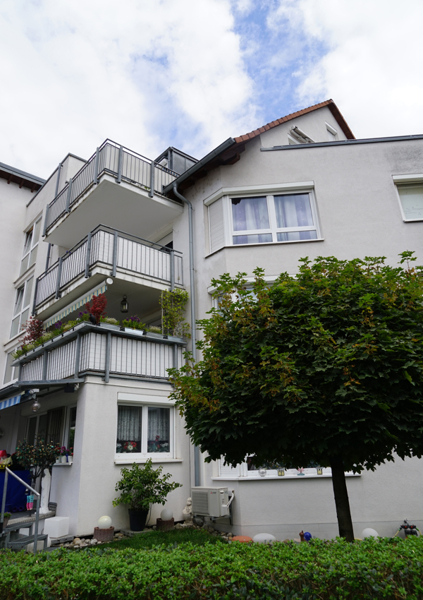 Vom Wohn- und Essbereich aus gelangt man auf den großzügigen, nach Süden bzw. Südwesten ausgerichteten Balkon, der durch den darüberliegenden Balkon vollständig überdacht ist und somit auch bei wechselhaftem Wetter genutzt werden kann.