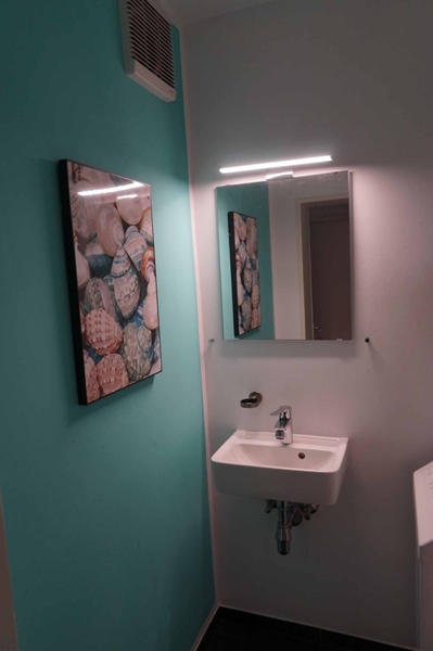 Auch das Badezimmer und die Gäste-Toilette wurden von Grund auf saniert. In der Küche, im Badezimmer, im Gäste-WC und im Abstellraum wurden große, anthrazitfarbene Bodenfliesen verlegt, während sämtliche Zimmer und Flure mit massiven Parkettböden ausgestattet sind. Das Badezimmer verfügt über eine bodentiefe Dusche, eine Badewanne sowie hochwertige Schrankeinbauten. Auch die sanitären Installationen wurden erneuert.