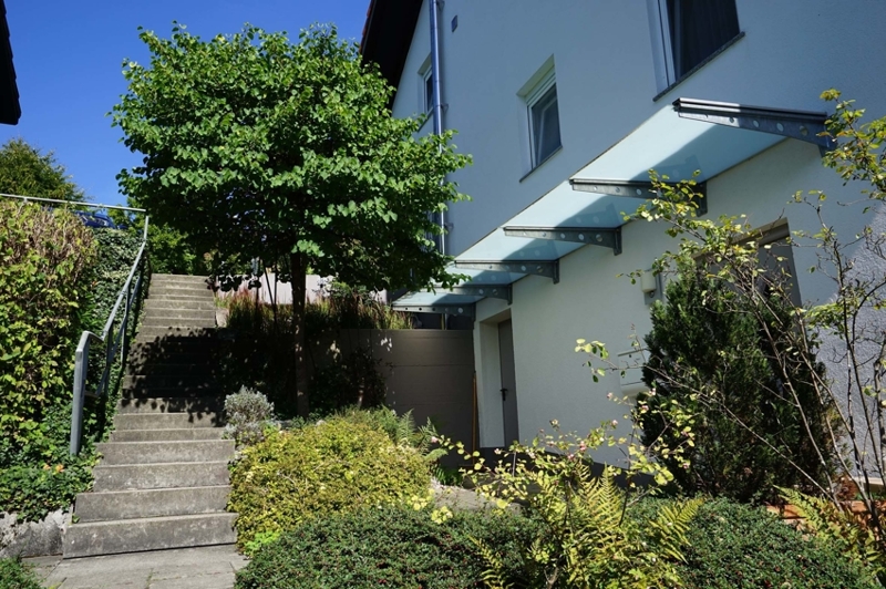Bereits an der Außenanlage kann man die Sorgfalt erkennen, welche die Eigentümer unserer Immobilie zukommen lassen. Ein gepflegter Gartenbereich, die saubere Einfahrt und ein modern gestalteter Hauseingang heißen Sie willkommen.