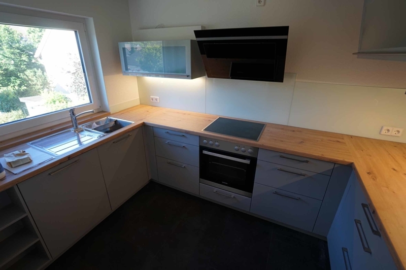 Neuer Eingangsbereich, Eingangstür, komplett Sanierung Gäste-WC im EG und das Familienbadezimmer im DG, sämtliche Bodenbelege wurden erneuert (hochwertiger Vinlyboden, ausgenommen das Wohnzimmer es hat einen Holzparkettboden; Das Wohnhaus wurde komplett mit neuen Fenstern ausgestattet u. Beachtung der neusten Anforderungen der ENEV (Energieeinsparverordnung). s. hierzu beigefügten Energieausweis. Die neuen Dachflächenfenster wurden mit entsprechenden Beschattungen ausgestattet. Alle Rollläden und die Jalousie nach Süden sind elektrisch gesteuert. Die Küche wurde komplett neu eingebaut und ist ausgestattet mit: Herd/Backofen/Geschirrspüler/hoher Kühlschrank mit Kühlunterschrank. Das Wohnhaus bekam zudem eine neue Heizung.