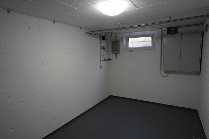 Neben der Küche (wieder im EG) führt eine Treppe hinunter ins UG/ Keller. Wir kommen hier zuerst in einem großen Zimmer an. Ein Wohnraum im Basement mit einem großen Fenster nach Westen in den Gartenbereich. Dieser Raum ist vielfältig nutzbar. Spielzimmer, Büro, Fitness etc. Daneben zwei Kellerräume. Der klassische Vorratsraum und der Heizraum mit Trockenmöglichkeit, Waschbecken, Waschmaschinenanschlüsse usw.