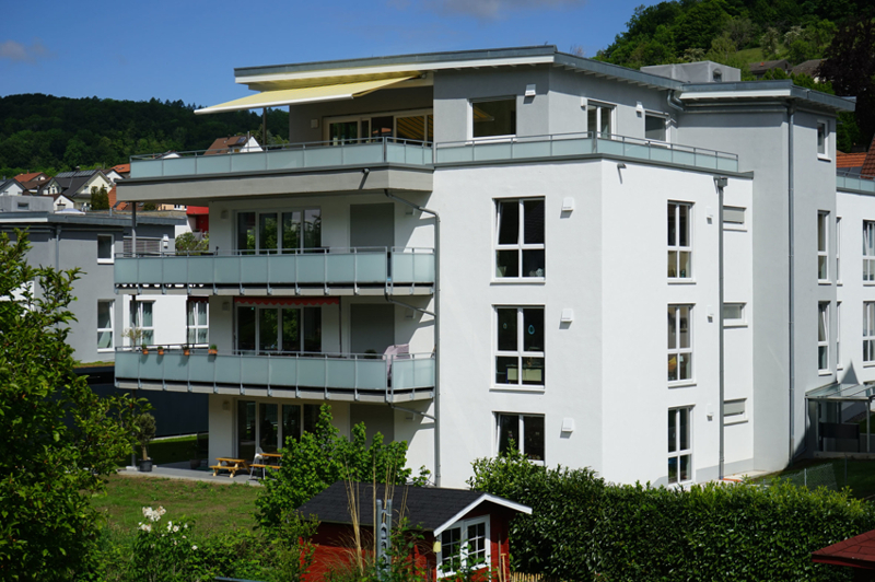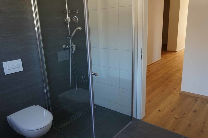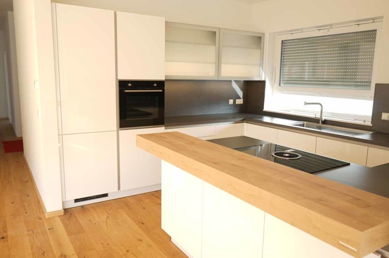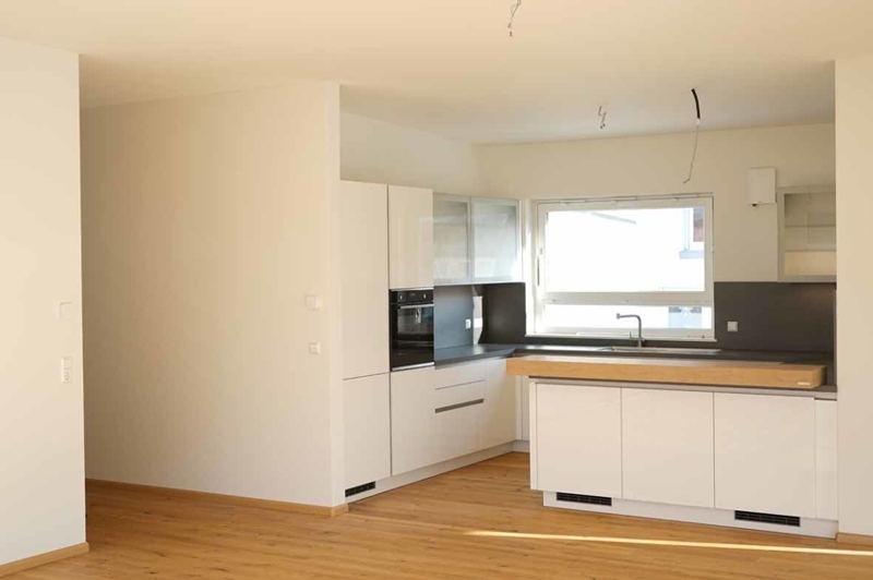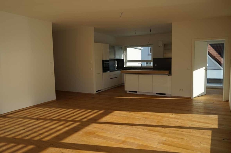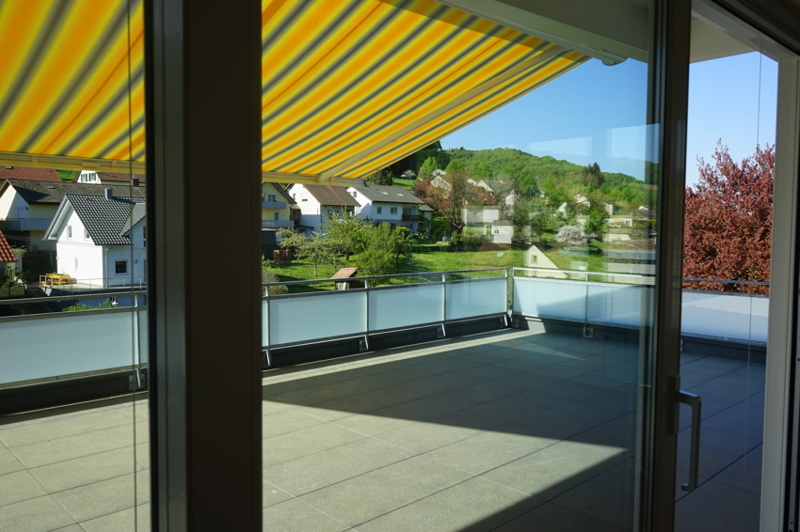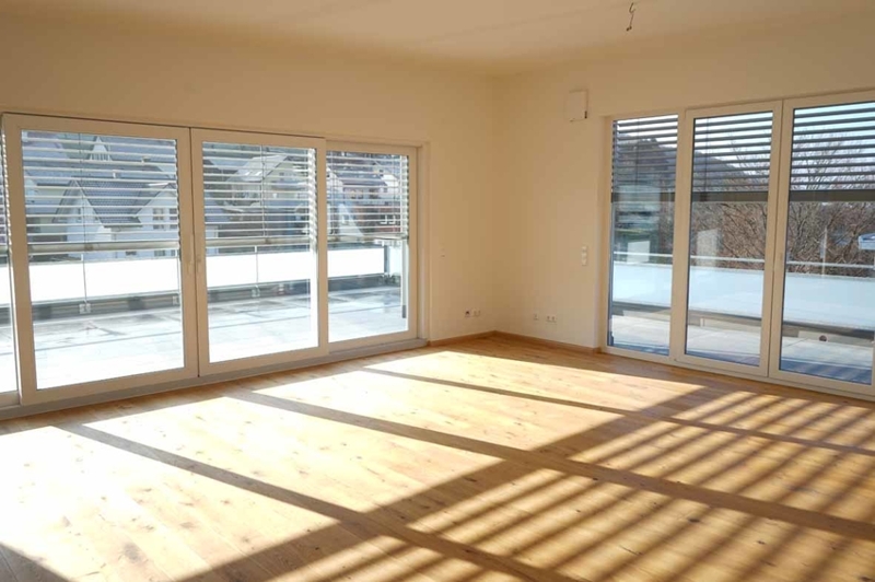 Das Penthouse besticht durch seinen sehr interessanten Grundriss und natürlich der fantastischen Aussichtslage. Sehr auffällig im Grundriss der zentrale und separate Bereich (Elternschlafzimmer mit Ankleide und Badezimmer, Dusche und Toilette, insgesamt ca. 33 m²). Um diesen „geschlossenen“ und damit sehr „privaten“ Wohnbereich sind alle übrigen Räume angegliedert. Zwei große Zimmer mit jeweils über 15 m² auf der Nordseite, mittig zwischen diesen beiden Zimmern ein großes Gästebadezimmer und nach Süden/ Südwesten ausgerichtet ein großes Wohn-, Esszimmer mit 43 m². Vom Wohnzimmer gelangen Sie über große, bodentiefe Terrassentüren auf den Südwest ausgerichteten Hauptterrassenbereich. Dieser sehr sonnige Terrassenbereich wird durch eine 6,50 m lange, elektrische Markise fast gänzlich beschattet. Alle Fensterflächen sind mit elektrischen Jalousien ausgestattet. Von der Dachterrasse haben Sie einen wunderschönen Blick über das Dorf und grenzenlos bis in die Schweiz und nach Frankreich. Die quadratisch angelegte Einbauküche (10 m²) mit Kochinsel ist zum Wohnzimmer hin offen gestaltet. Sie ist mit einem Induktionsherd mit integrierter Abzugstechnik, Geschirrspülmaschine, einem Backofen auf Sichthöhe sowie eine Kühl-Gefrier-Kombination ausgestattet. Der Waschmaschinenanschluss befindet sich im Gästebadezimmer. Das Penthouse, alle Räume und Flure, sind mit einer einzelregulierbaren Fußbodenheizung ausgestattet, die für eine angenehme und konstante Wärme sorgt. In den Bädern gibt es zusätzlich elektrische Handtuchheizkörper. In jedem Zimmer ist zudem das oben bereits erwähnte elektrisch steuerbare Lüftungssystem installiert. Die Bäder, wie auch das Gäste-WC sind mit großformatigen Fliesen ausgestattet in den Farben Weiß und Anthrazit.