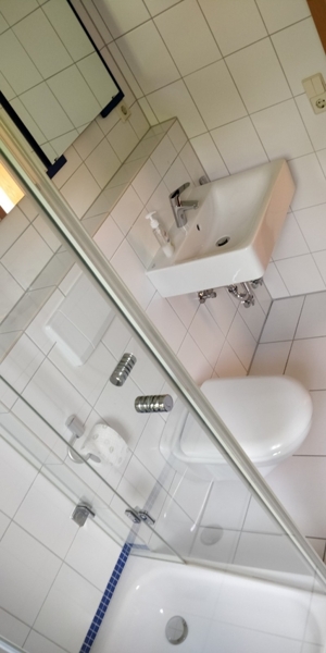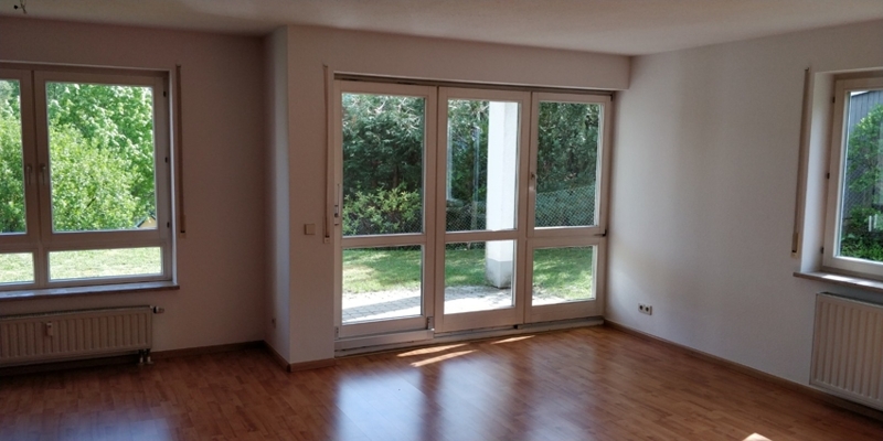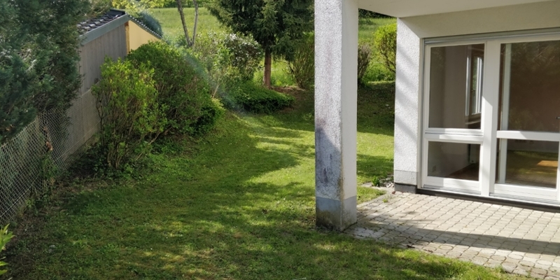 Unsere 2,5-Zimmer Wohnung liegt im Erdgeschoss eines Mehrfamilienhauses mit 3 Wohnebenen und somit 6 Mietparteien. Gleich im Eingangsbereich unserer EG-Wohnung befindet sich rechts das moderne Badezimmer mit ebenerdiger Dusche. Geradeaus finden wir das Schlafzimmer mit Balkontür zum Austritt in den wunderschönen Gartenbereich.