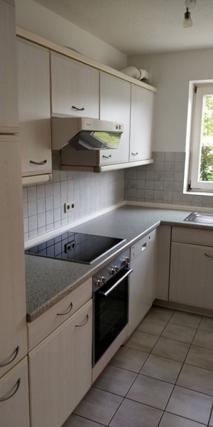 Die Küche schließt gleich an den Essbereich an und ist mit einer vollausgestatteten EBK in L-Form versehen. Neben der Küche befindet sich zudem noch ein über 3 m² großer Vorratsraum.
