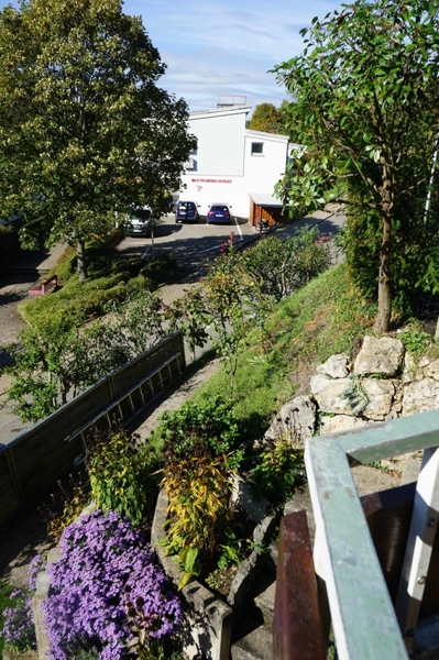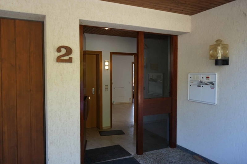 Unsere 4,5 Zimmer Wohnung befindet sich in einem 2-Parteien-Wohnhaus auf Erdgeschossebene und ist somit beinahe barrierefrei. Als Mieter hat man das Gefühl, man wohne alleine im Haus, da von der Eingangsebene (Straßenseite) nur die erste Etage sichtbar ist und der Eigentümer der UG-Wohnung meist den separaten Außeneingang von der linken Seite des Hauses aus benutzt. Der nördlich ausgerichtete Haus- und Wohnungseingang liegt gleich neben der Doppelgarage, von der die rechte Seite unserem Mieter zugedacht ist.