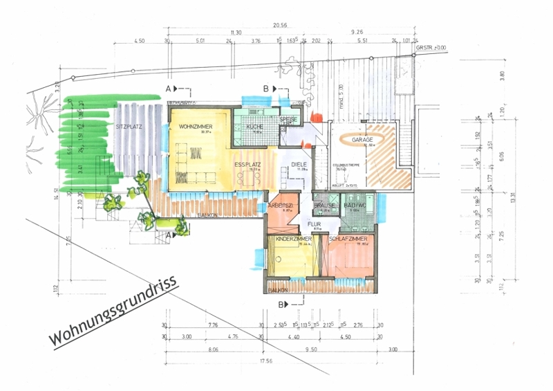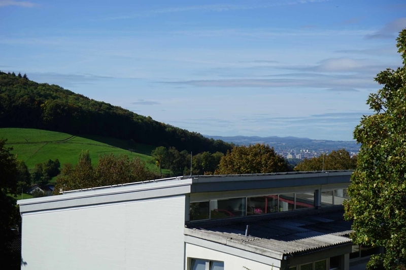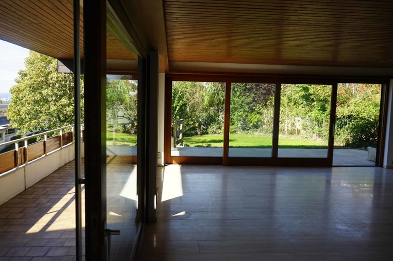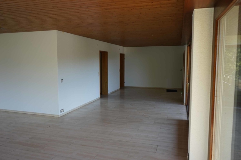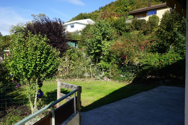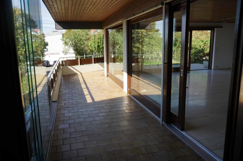 Der Grundriss unserer großzügigen Wohnung ist optimal geschnitten. Zunächst gelangen wir in die Diele, die nahtlos in den Wohn- und Essbereich übergeht. Gleich rechter Hand liegt die ca 11 m² große, fast quadratische Küche mit anschließender Speisekammer. Das helle, nach Süden und Westen ausgerichtete Wohnzimmer besticht mit großen Fensterfronten, die mit bodentiefen Glaselementen versehen sind. Nach Westen hin betritt man die Terrasse (Sitzplatz im Freien), die wiederum nahtlos in den der Wohnung zugeordneten Gartenbereich übergeht. Das Wohnzimmer allein verfügt schon über eine Wohnfläche von mehr als 30 m² und ist zusammen mit dem zusätzlichen ca. 16 m² großen Essbereich umrandet von Terrasse und überdachtem Balkon, welcher durch die südliche Hanglage einen wunderbaren Ausblick bis in die Schweiz hin eröffnet.