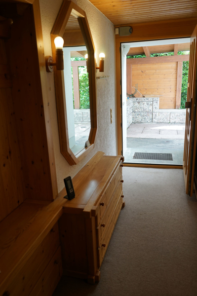 Unsere 2-Zimmer-Wohnung befindet sich im Untergeschoss eines Zweifamilienhauses und verfügt über einen separaten Eingang, der linker Hand am Haus entlang verläuft. Aufgrund der zum Hauseingang ansteigenden Hanglage, betritt man die Wohnung ebenerdig und hat somit eher das Befinden, im Erdgeschoss zu wohnen.