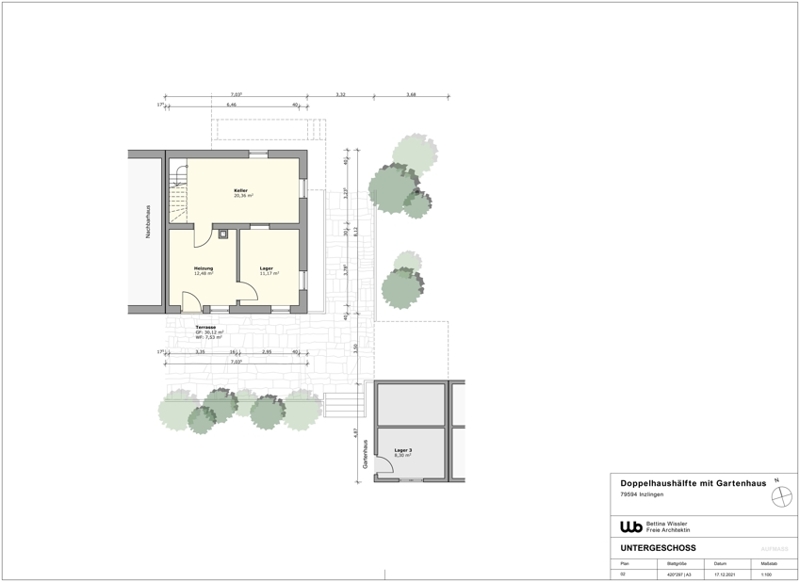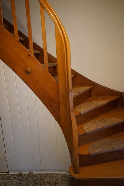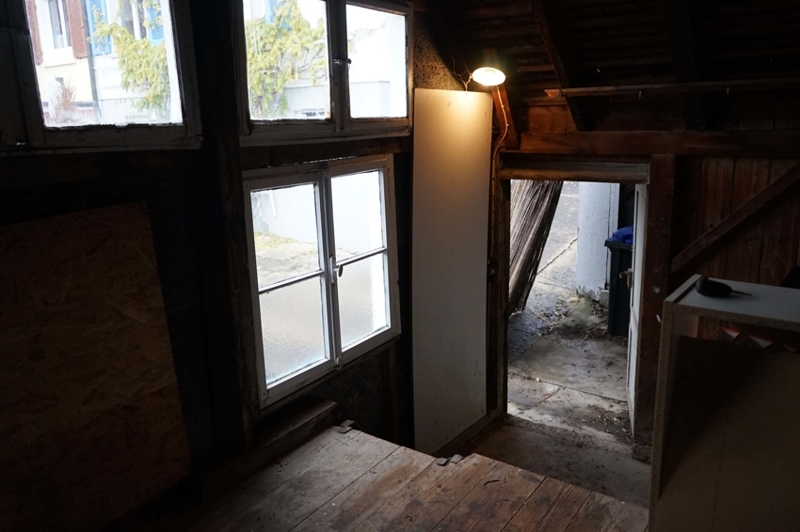 Die Wohn- und Nutzflächen im Wohnhaus verteilen sich auf insgesamt 3 Stockwerken. Die beiden Kellerräume, mit Werkstatt und der zusätzliche Heizungskeller befinden sich im Untergeschoss. Hier untern führt auch eine separate Tür direkt auf die Terrasse und in den Gartenbereich im Süden. Über dem bereits beschriebenen Erdgeschoss im Dach des Wohnhauses gibt es zwei große Schlafzimmer und ein Badezimmer mit Badewanne ohne Toilette. Der Wohnbereich im EG und im DG ist über eine Holzwangentreppe verbunden. Die Kellerräume sind über eine massive Treppenanlage erschlossen.