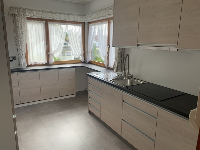 Die Ausstattung der Einbauküche könnte besser nicht sein: Backofen auf Arbeitshöhe, Herd, Kühl-Gefrier-Kombination und natürlich auch ein Geschirrspüler.