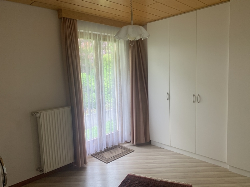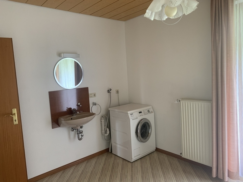 Der Waschmaschinenanschluss befindet sich im Gästezimmer. Dieses war früher der Wirtschaftsraum und der Anschluss wurde in den kommenden Jahren dort gelassen. Praktischerweise verfügt das Gäste-Zimmer aber auch über ein eigenes Waschbecken.