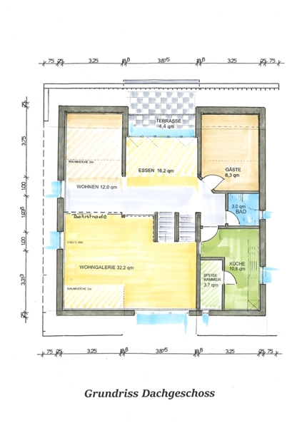 Ursprünglich war das Wohnhaus als Einfamilienhaus konzipiert mit einem durchgängigen Treppenhaus. Bei der späteren tatsächlichen Bauausführung wurden dann zwei baurechtlich ab- geschlossene Wohnungen errichtet. Dabei wurde das bestehende Treppenhaus baulich verändert, um die Abgeschlossenheit der beiden Wohnungen zu gewährleisten.