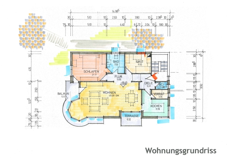 Zu unserer Wohnung gehört ein Kellerraum sowie eine Garage. Letztere kommt mit 50,00 € zur vorstehenden Warmmiete dazu. Die Miete für die Einbauküche ist in der Kaltmiete bereits enthalten.